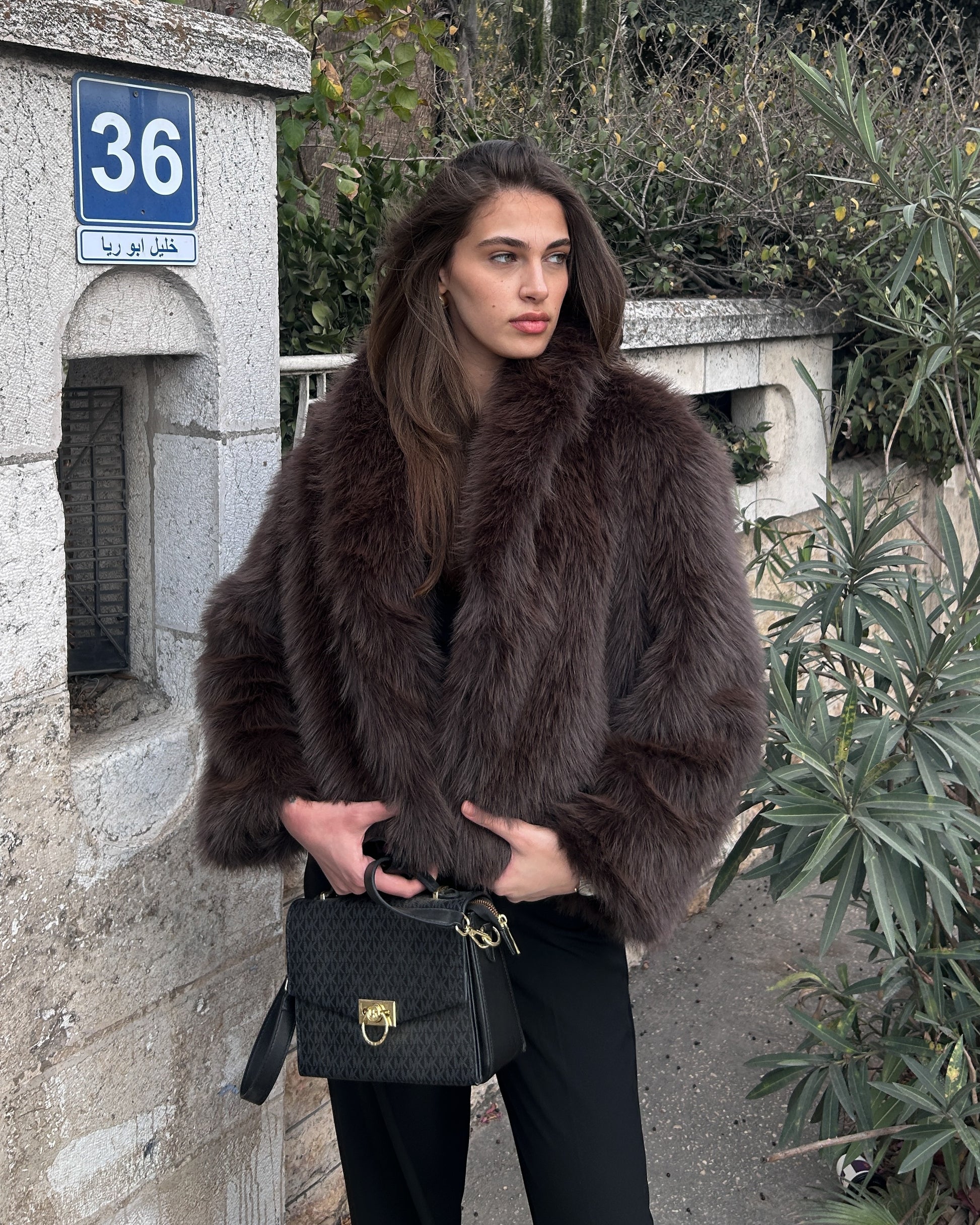 Chocolate Brown Faux Fur Oversized Jacket | جاكيت فرو واسع باللون البني