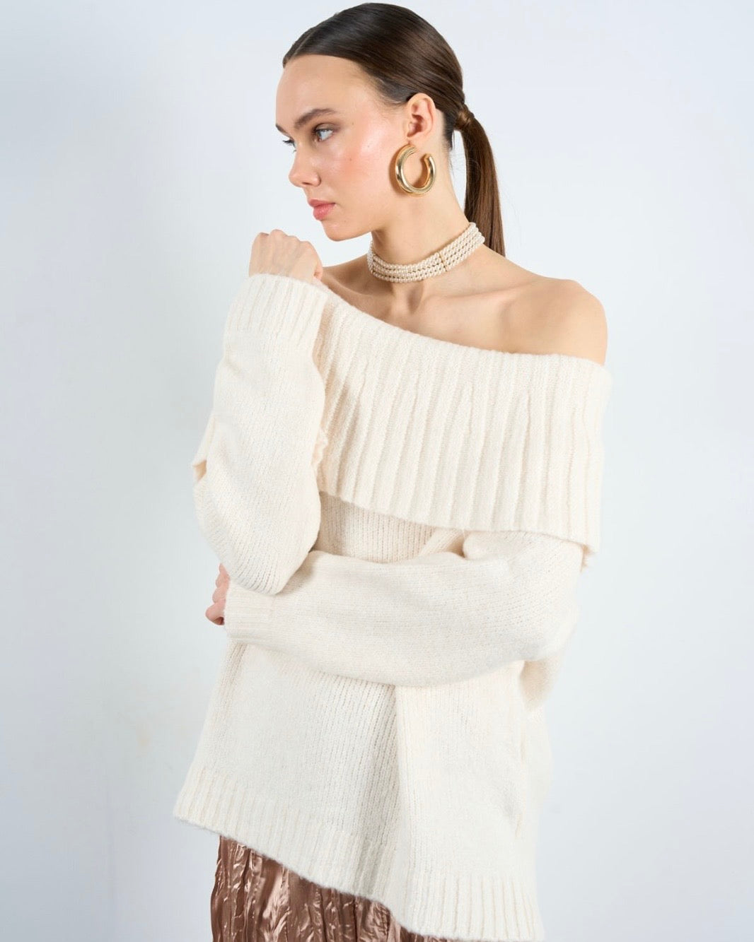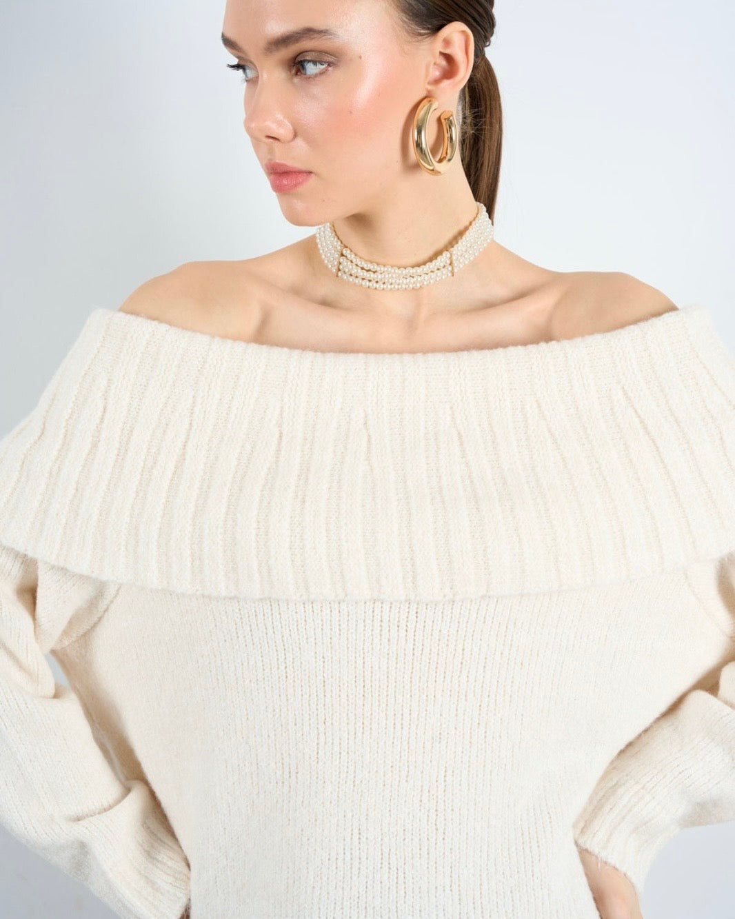 סוודר קרם אוף דה כתף