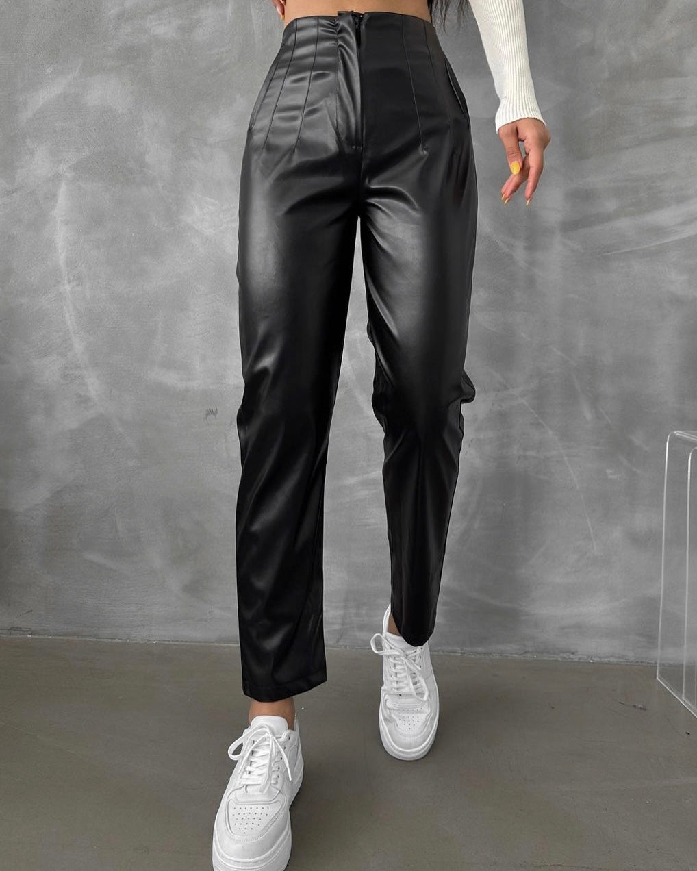 بنطلون جلد أسود لامع، بنطلون مصنوع من جلد صناعي عالي الجودة، يوفر القوة واللمعان الأنيق الذي يلفت الأنظار. اللون الأسود يضيف لمسة من الأناقة، مما يجعله سهل الدمج مع أي زي سواء كان ليوم عادي أو حدث مسائي راقي.