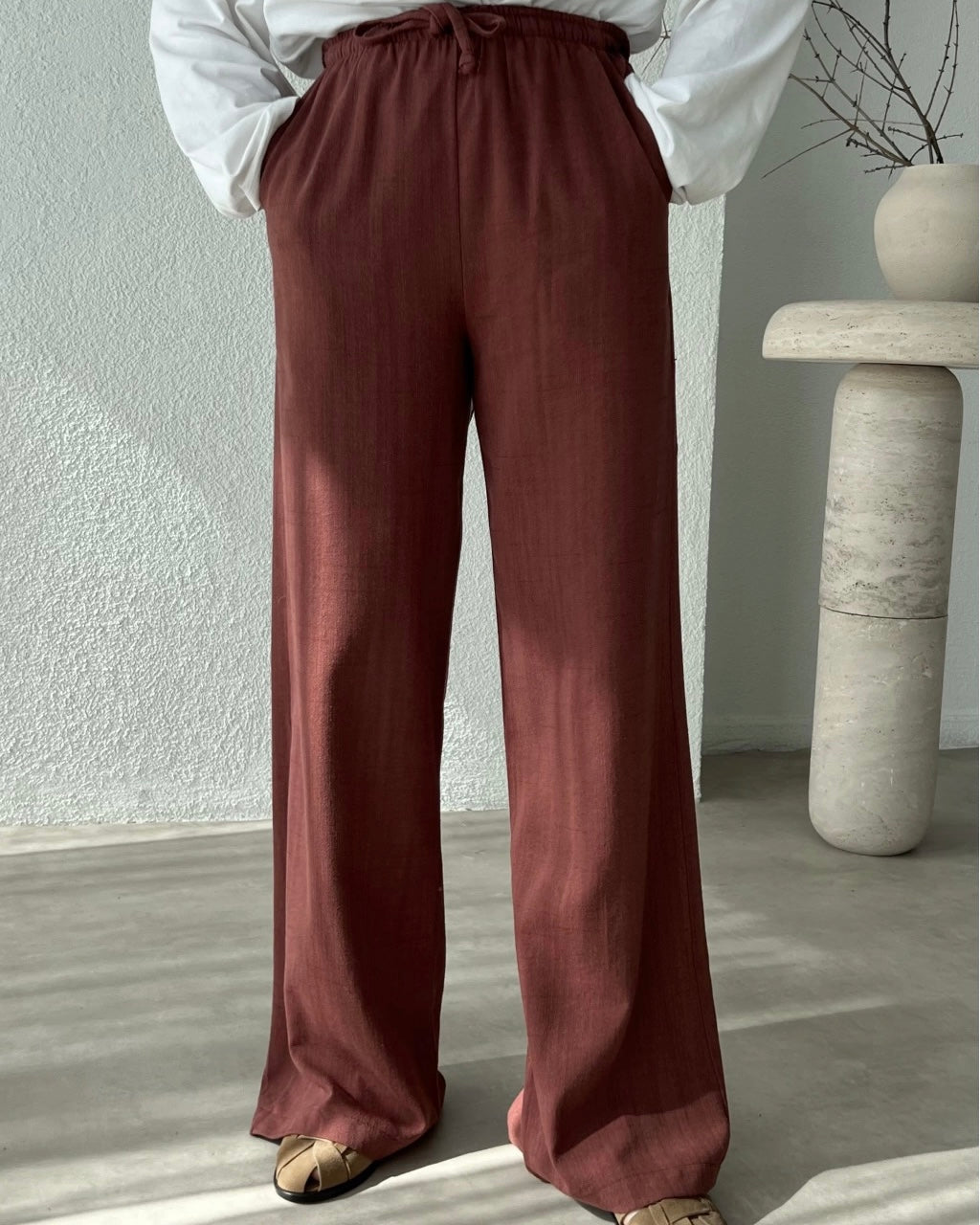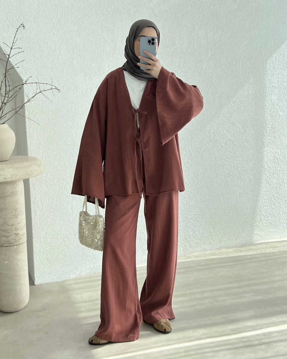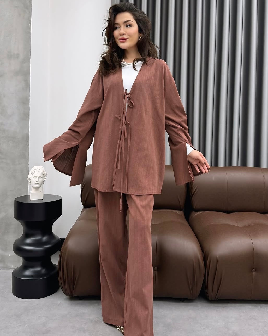 Terracotta Tie Front Casual Set | طقم كرميدي كاجوال برباط أمامي