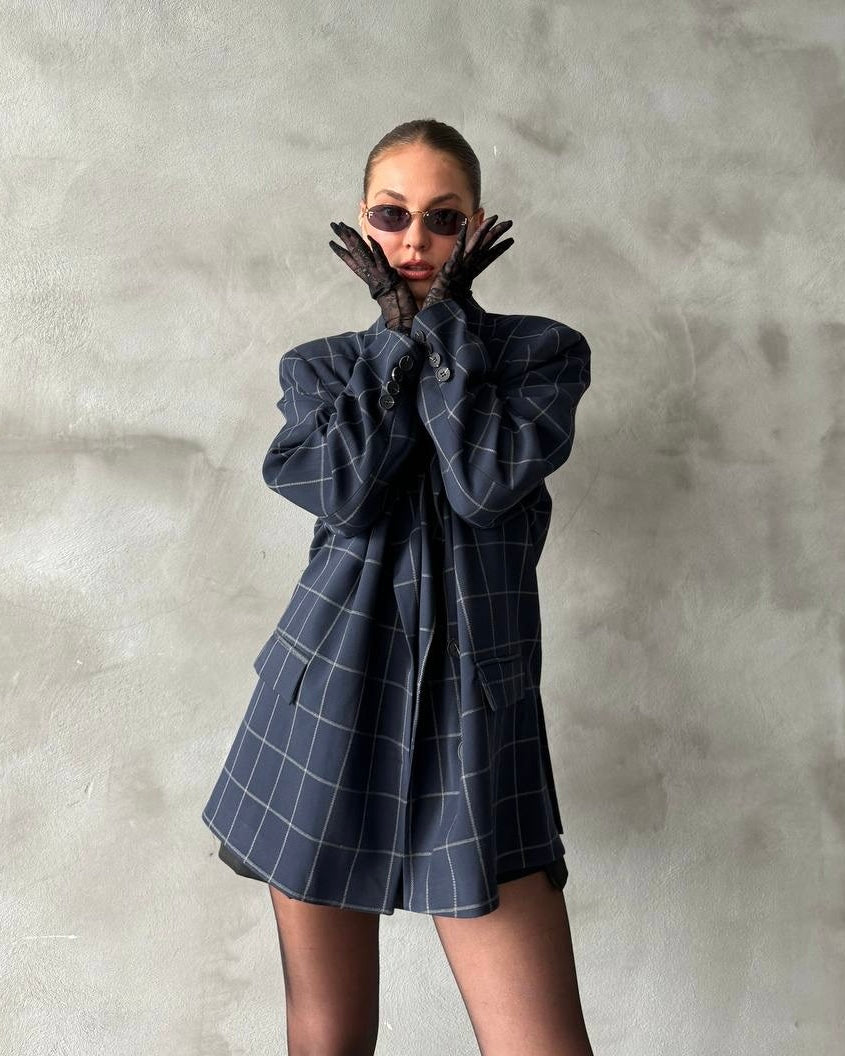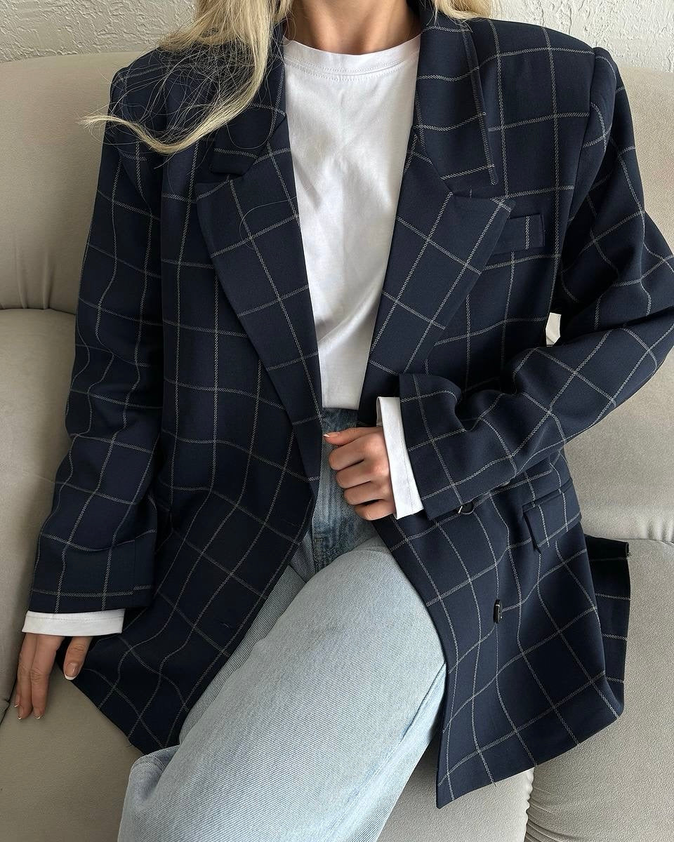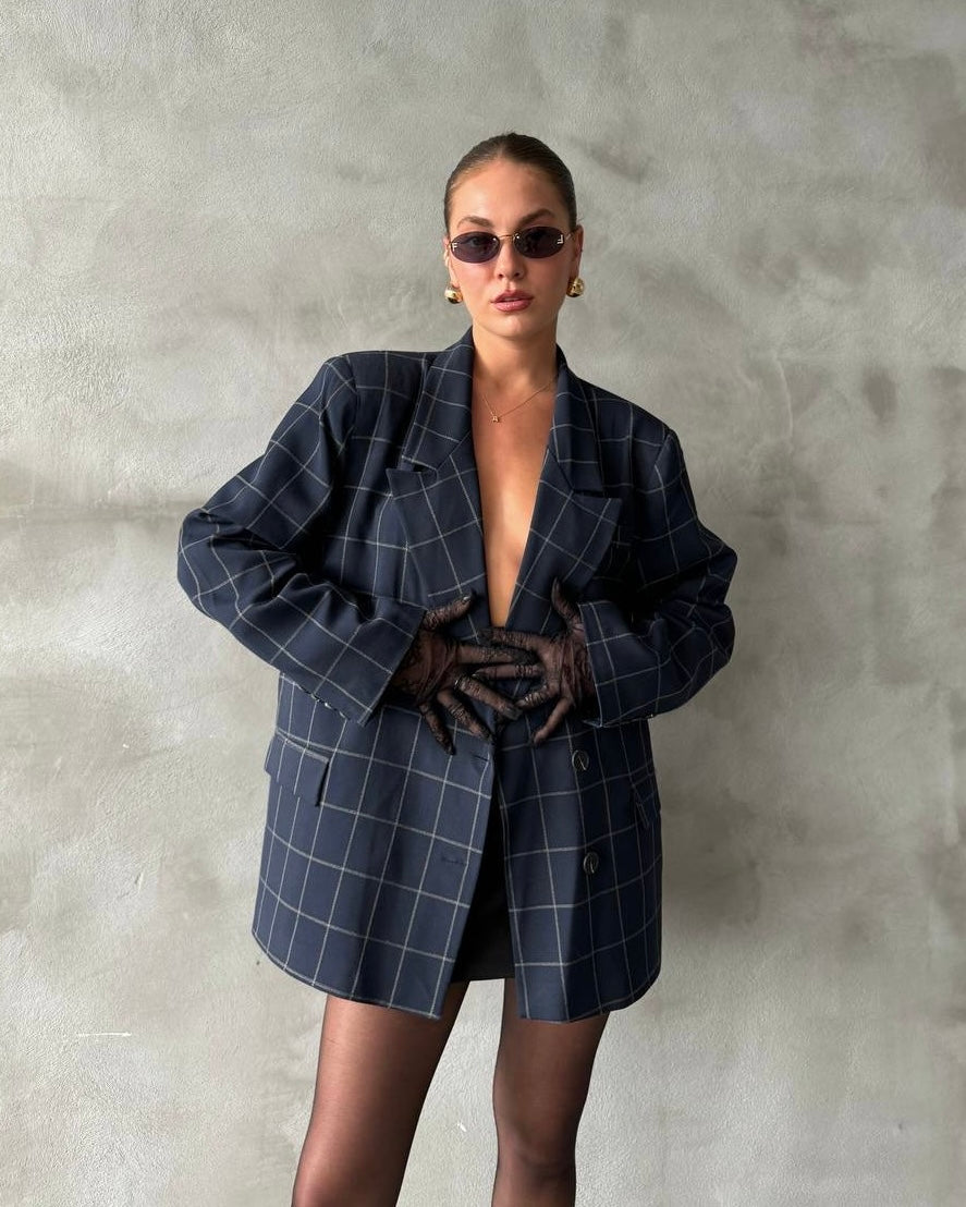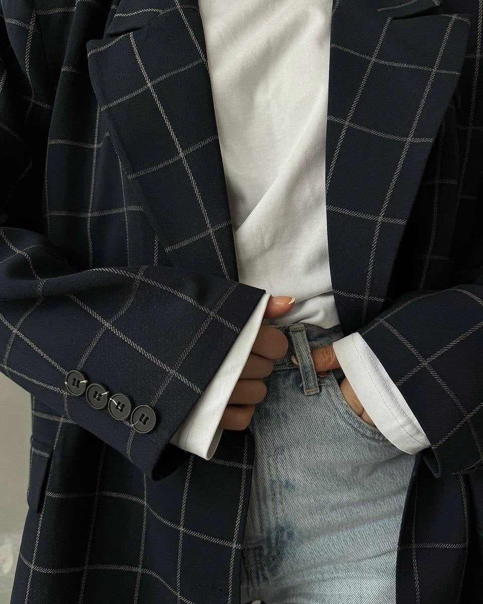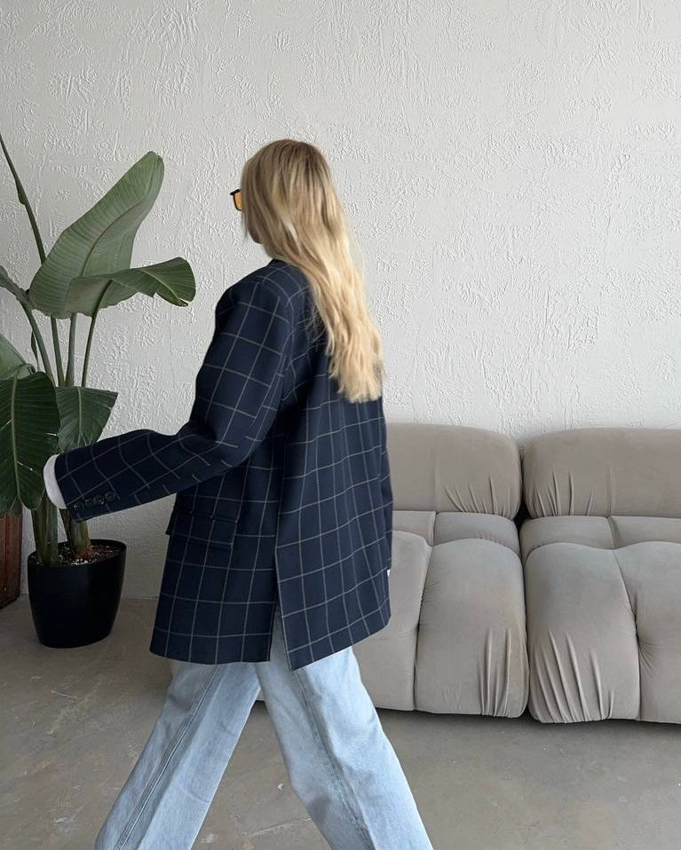 בלייזר משובץ אוברסייז כחול נייבי