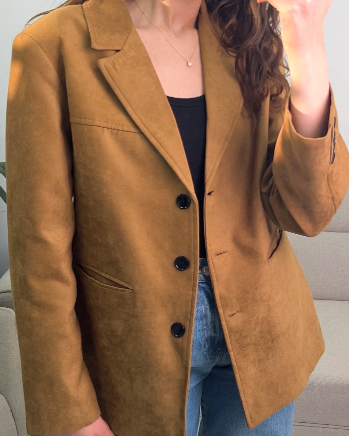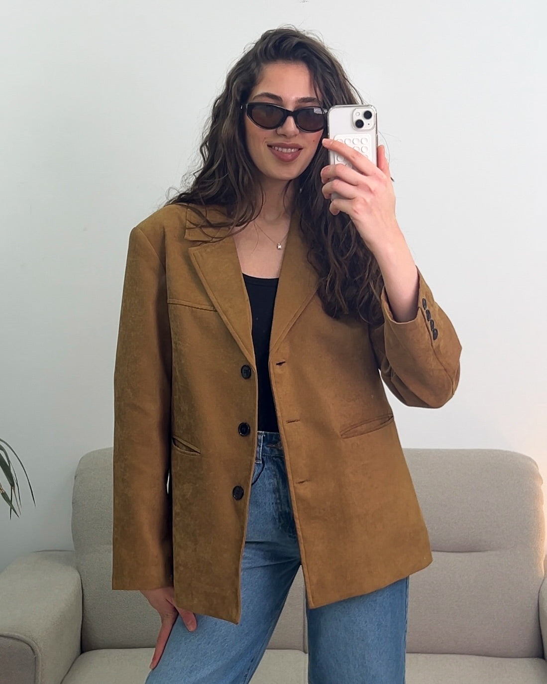 بليزر مصنوع من قماش الشمواه بلون كرميدي دافئ