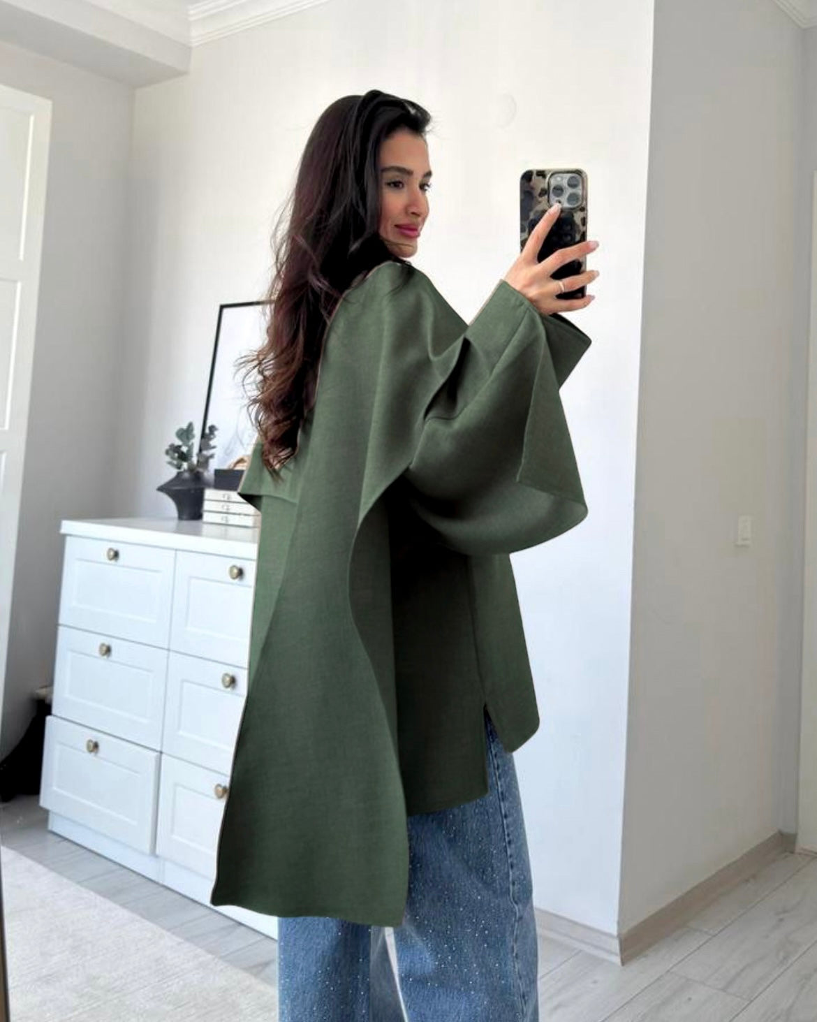 Green Asymmetrical Cape Top | توب كيب غير متماثل باللون الاخضر